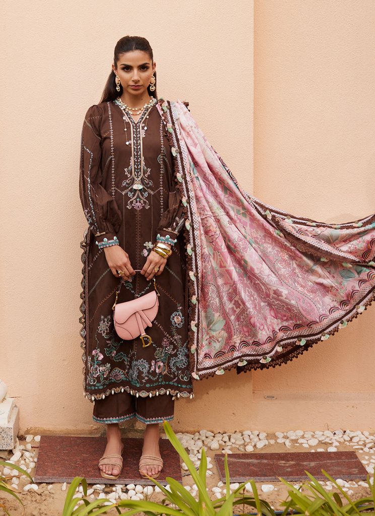 AED 293FTA | WES Luxury Lawn 25 | Unstitched | Brown | Feastive Wear | Lvella Lindtt | 3 pc set.