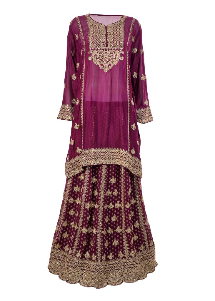 AED 704Indo Western | Maroon | Stitched | Party Wear | Garara Kurti Set | 3 Pc Set