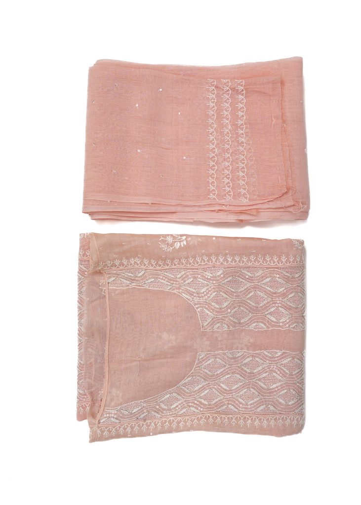 AED 440Maysarah Lucknowi | Peach | Semi Stitched | Kurta dupatta | Daily & Festival Wear | 2 pc set.