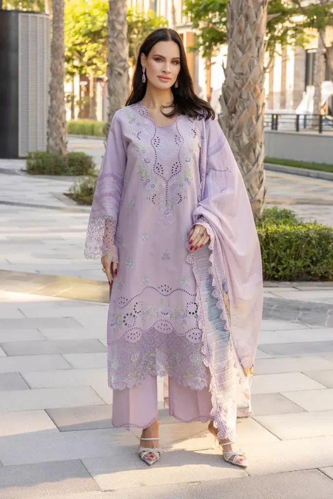 AED 250Rang Rasiya | Carnation Summer Edit | Amelia | Lilac | Stitched Embroidered Net Suit | 3 Pc.